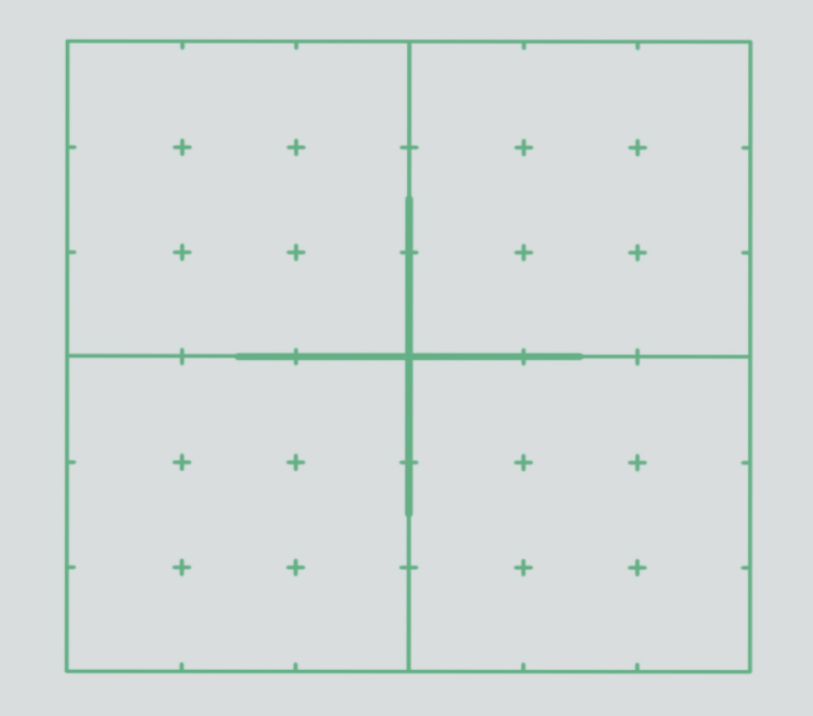 日本の場合、マーチングのラインは30m×30mの正方形を描き、それをさらに5mごとに区切ったポイントを入れたものが一般的です。